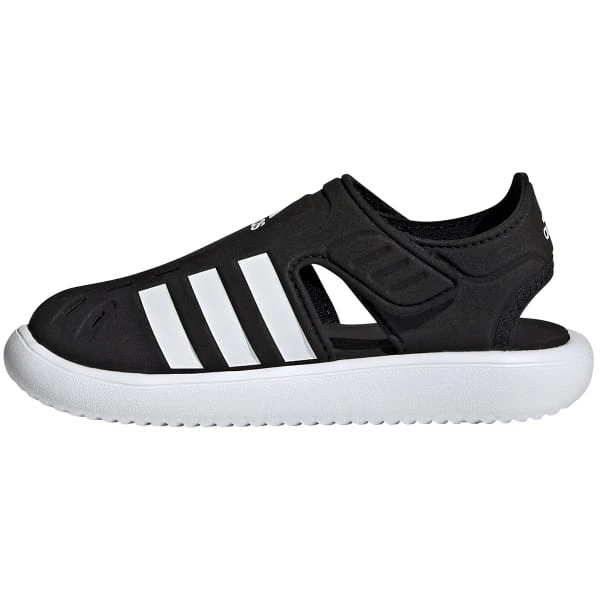 Camping and canoeing. Splashing and bubble blowing. Yup, it’s vacation time. The adjustable hook-and-loop wings on these kids’ adidas sandals create a snug fit, even when feet get wet. The closed front with quick-dry openings keep toes dry and safe from sharp objects that threaten to ruin the day.