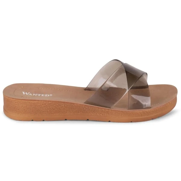 - Slip on sandal with cross band detail